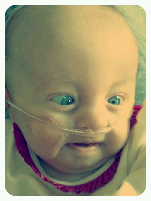 A few weeks ago we sent Nora’s medical records out to 3 different hospitals based on the advice of a couple of other families in the t18 community. We are in quest of second opinions about Nora’s heart as it relates to her pulmonary hypertension (the reason for her oxygen tubes). Nora’s case was taken before the board at Cincinnati Children’s and it was concluded that Nora would not be a good candidate for heart surgery at this time. We were okay with that and the explanation that was given to us. However, this is our daughter’s LIFE we’re talking about. Of course we were interested in some other opinions just to make sure we have all of our bases covered. We have heard back from one of the hospitals. The doctor that William spoke with yesterday still has to bring Nora’s case before the board at his hospital, but he is of the opinion that Nora would be an excellent candidate for heart surgery. I won’t go into all the specifics, but basically it was a really good conversation. William said this doctor didn’t sound wishy washy about it – he very firmly stated that Nora would benefit from surgery.