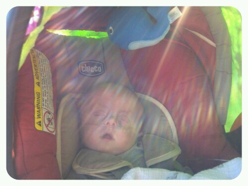 3. WELL HERE I AM AGAIN, I FORGOT TO COMMENT ON THE ONE PICTURE OF NORA IN HER STROLLER. I THOUGHT THAT YOU HAD PUT SOMETHING ON THE FRONT OF THE STROLLER, IT COULD BE HER GUARDIAN ANGEL WATCHING OVER HER. I LIKE THAT YOU THOUGHT THAT WAY. I REALLY AM HEADED FOR BED THIS TIME.