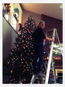 When I got back home I was giddy with excitement to see that my Mom has tackled the task of not only scouting out the lights for our “monstroci-tree” but hanging them as well!!!