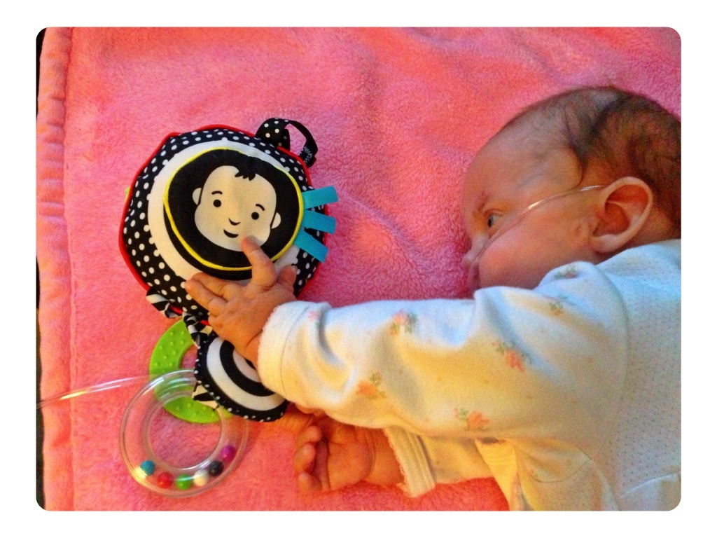 She took today’s serving without any winces and already we’ve figured out that we no longer need to supplement her high calorie recipe of milkies with Miralax!! The coconut oil will do just fine on its own. Now hopefully it will protect her against the germs in this place as well!