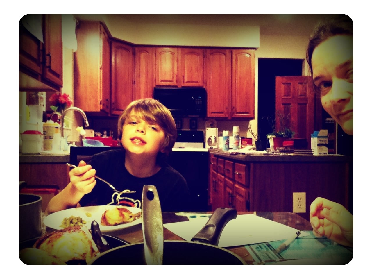 William is sick and is staying at a hotel with Greta. Gavin and I had dinner here by ourselves. He got to be the Man of the House and sit at the head of the table!