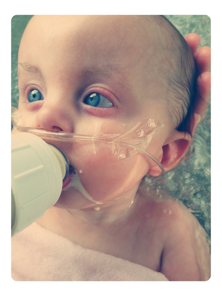 We’ve been given the green light by the pediatrician to start taking Nora off of her oxygen flow for periods of time while monitoring her oxygen levels! I had her off today for an hour and she maintained her oxygen levels in the mid to high nineties all by herself! It sure would be nice to have a “cordless” baby!! We will gradually increase her time away from the oxygen every few days and see how she does! I absolutely LOVE those bare little cheekies! RaspberryFest!!!!!!!