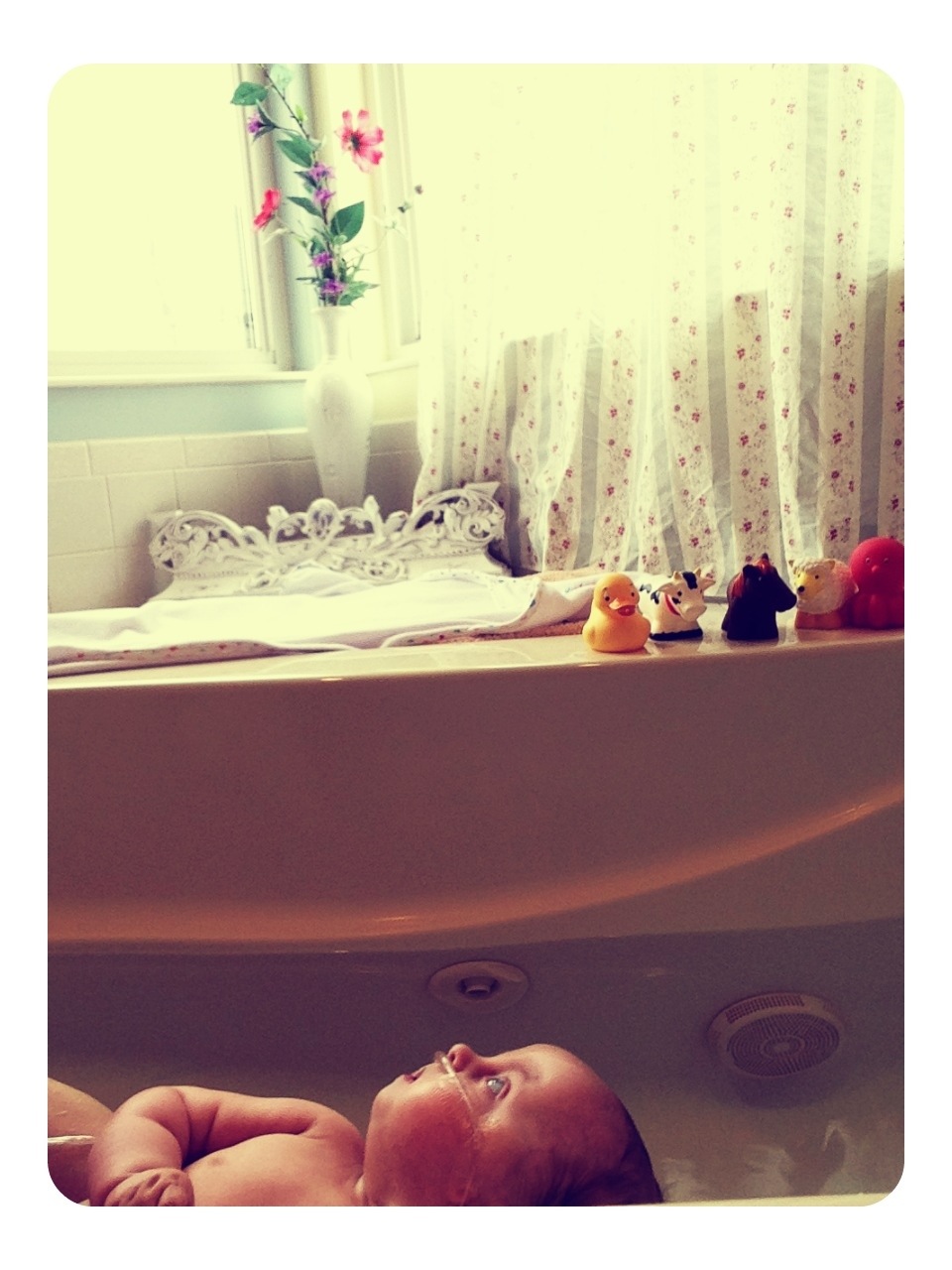 Once again the big beautiful snowflakes were upon us. What better place to watch them from within a warm baff!?