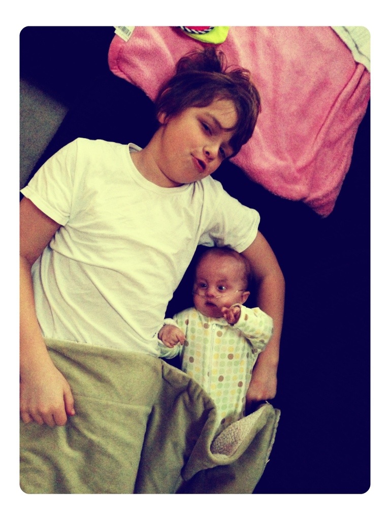 A two hour delay facilitated some extra cuddle time for Nora and her big brother this morning.