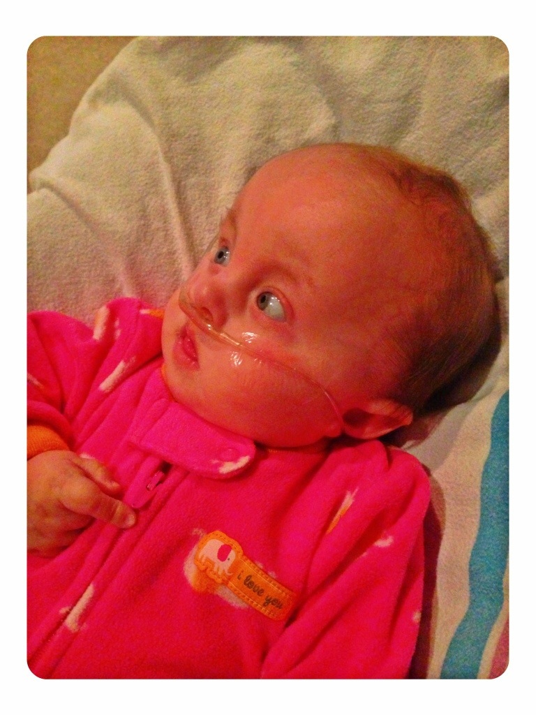 We’ve been given the green light by the pediatrician to start taking Nora off of her oxygen flow for periods of time while monitoring her oxygen levels! I had her off today for an hour and she maintained her oxygen levels in the mid to high nineties all by herself! It sure would be nice to have a “cordless” baby!! We will gradually increase her time away from the oxygen every few days and see how she does! I absolutely LOVE those bare little cheekies! RaspberryFest!!!!!!!
