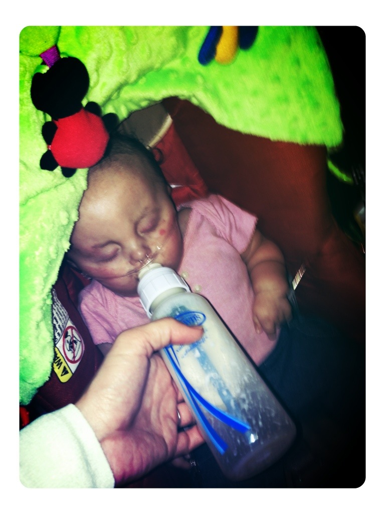 Her last stretch of sleep lasted literally about 20 minutes until she abruptly and loudly gagged herself awake on snot, precisely the moment I had fallen into a deep sleep. Before I was even conscious, I was standing at her bedside patting her back and trying to extract boogies. It was then that the nurses came in and finally observed that Nora had had just about enough. Hopefully there was enough data for them to work with and they began removing all of her paraphernalia. The previous inconveniences of a single oxygen tube were made null and void. I was delighted to have my “naked” baby back. We celebrated with a bottle of milkies and quickly got dressed and packed up.
