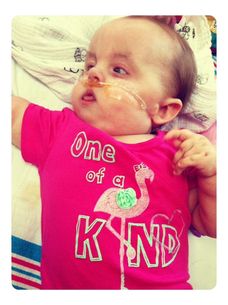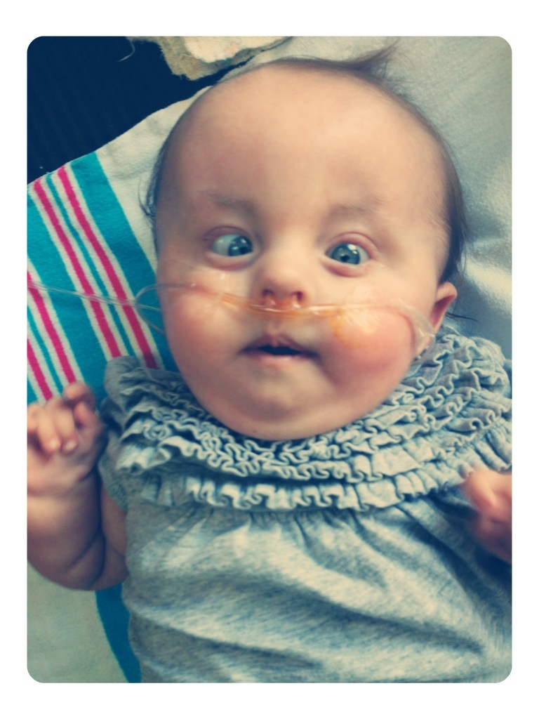 Nora’s cold is still lingering – going on Day 10 now. There is still lots of drainage which triggers the gags which triggers the pukes. And of course the “never ending” belly troubles. We were giving her 30 mL of prune juice before each feed, but since her cold came about, that was a guaranteed puking episode. We’ve been adding 10 mL of juice to each bottle without her noticing and I’ve also introduced her to prune baby food. Just not sure of how much is enough. We’ve been up with her for much of the night with lots of belly troubles. It’s so sad and frustrating not to be able to help her when she’s hurting. 😦 I hope and pray she outgrows these issues someday!