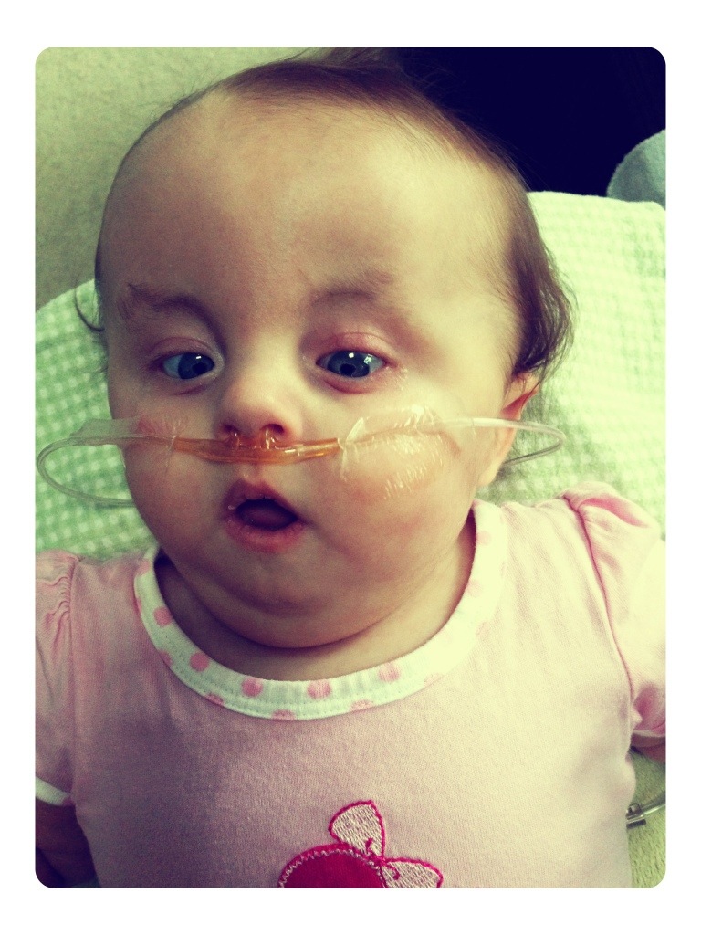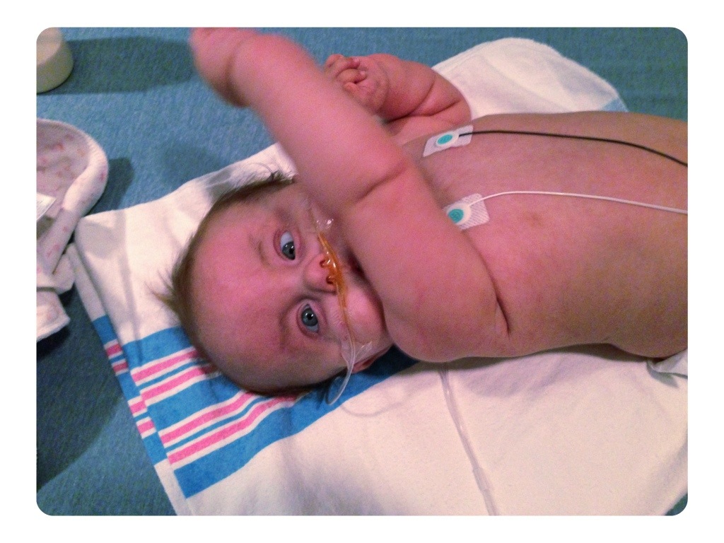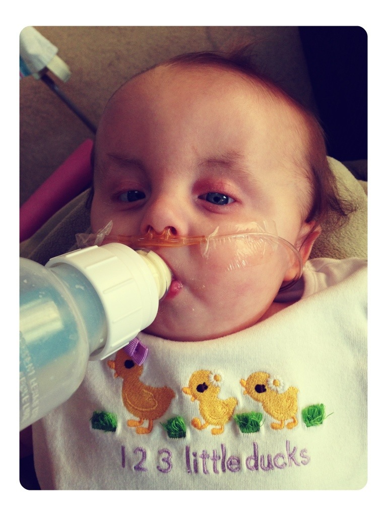 Once at the hospital we got right back to a room. The admitting nurse was just blown away that Nora feeds orally and she is as chunky as she is – 17 lbs. 14 oz. It’s in those moments that I am reminded of what a rarity and what a miracle Nora really is.