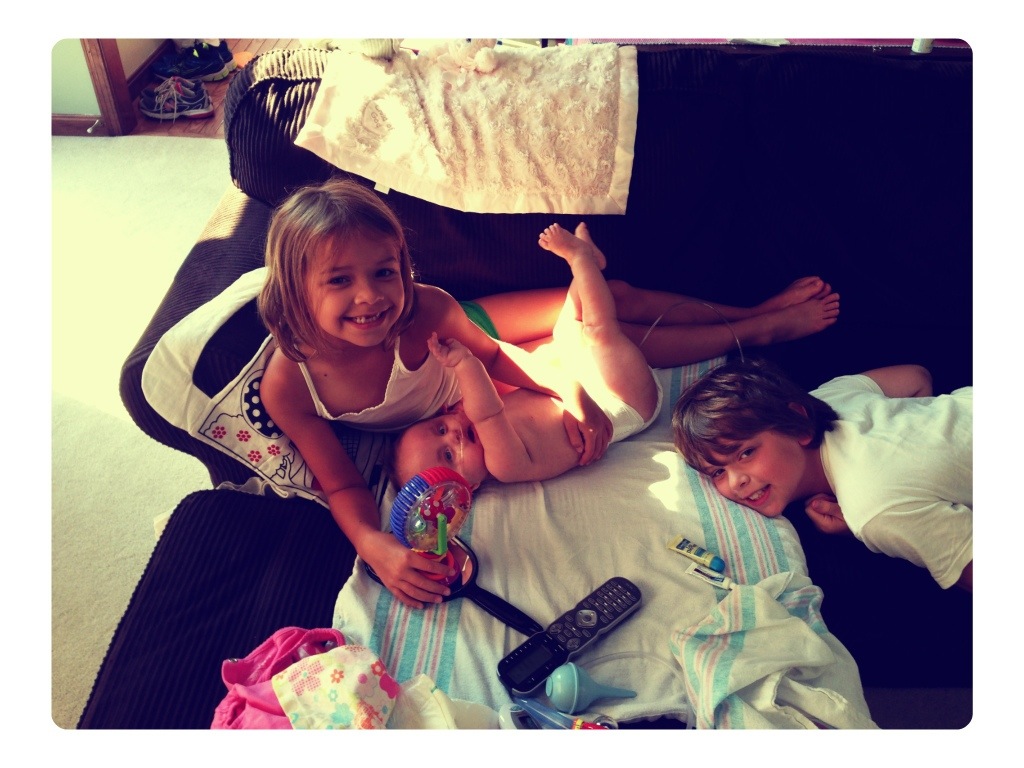 Brudder and Sister were awake when we got home. Lots of sweet cuddling and rolling around ensued. This baby loves her little people! It’s as if she knows she’s one of them!