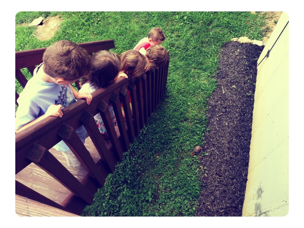 Gavin, Greta and the cousins watched inquisitively as he devoured the strawberry and grapes we jacked from Kelly’s shelf in the refrigerator! 😮
