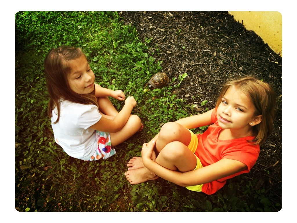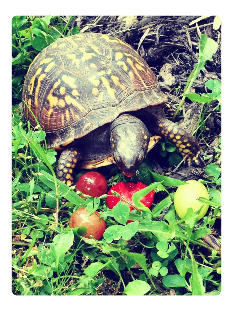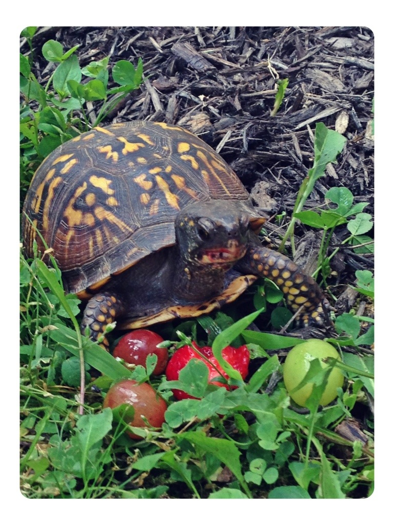 Our attentions were briefly drawn to a traveling box turtle that happened through the yard. He was very bold and curious, no stranger to humans.