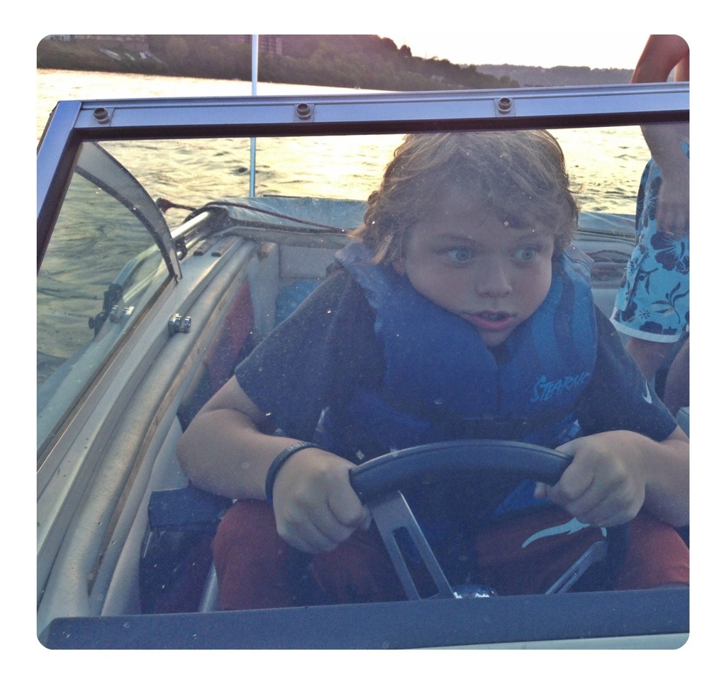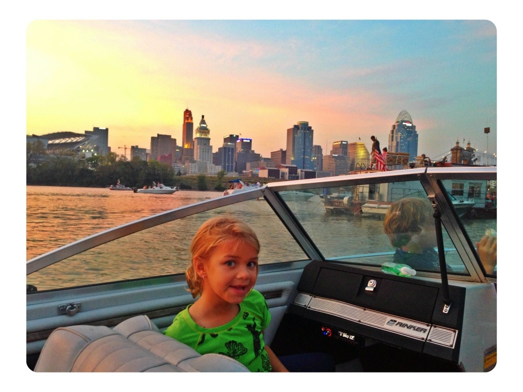 We tried to make the best of a plaintive day and went out on the river with the big kids to watch the fireworks.