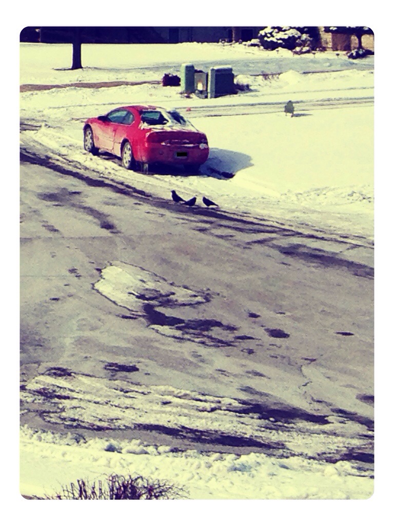 The Big Kids took advantage of a warmer day to explore the snow covered woods. I never imagined we would ever consider 38° as “warm”!! I was able to keep an occasional eye on them from the upstairs windows: