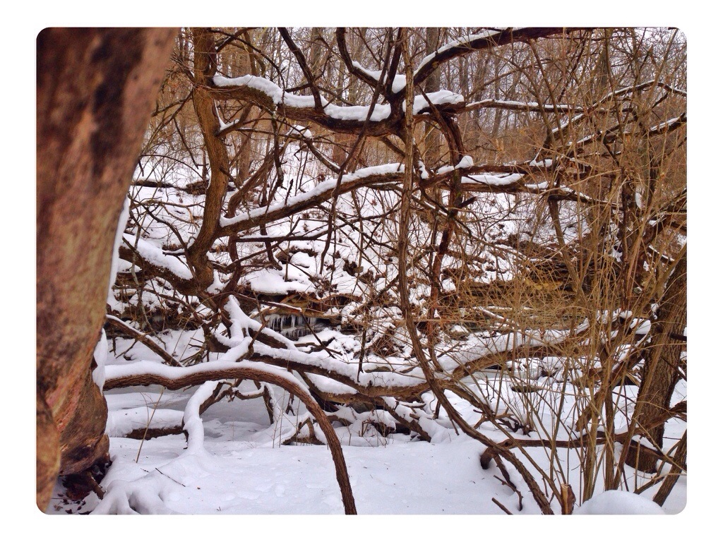 The woods were so quiet but for the crunch of the icy snow beneath my boots and a couple of little voices conspiring on how they were going to build their snow shelter.