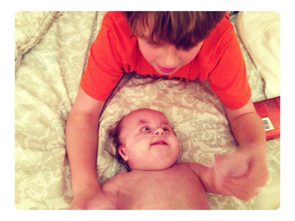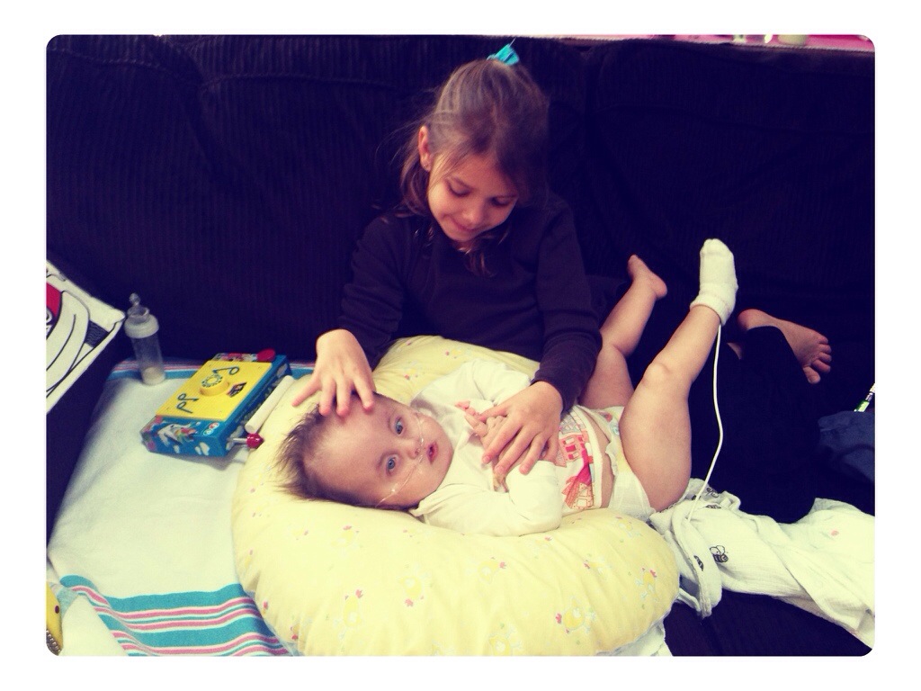 In the mean time Nora enjoys hanging out in her Bumbo with her sister.