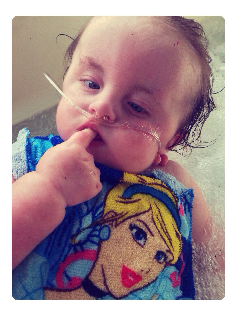 Nornor woke up happy and squealy on her second birthday. She drank some milks and then headed up for a nice relaxing birthday baff.