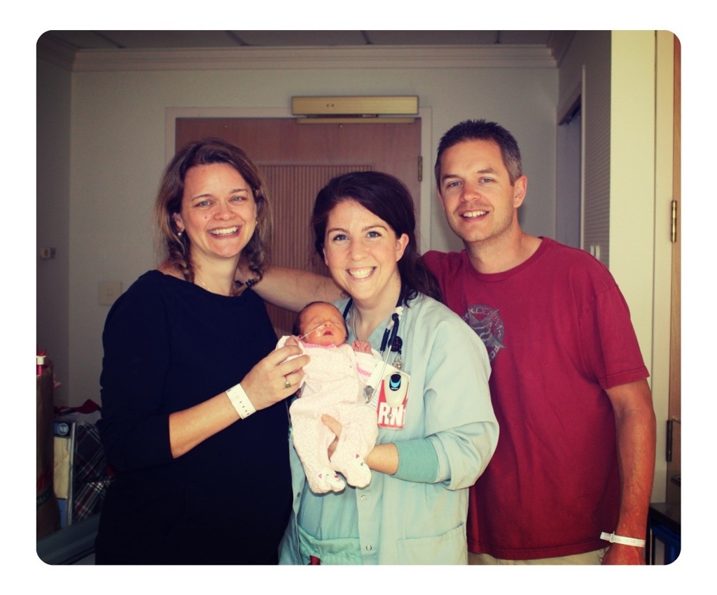 One of our awesome nurses, Kate C. getting us ready to be discharged from the hospital ~ April 2012