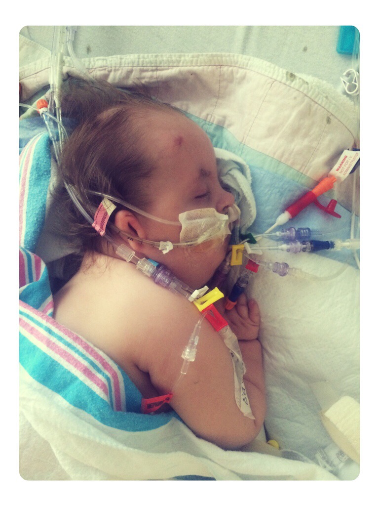 Little heart-shaped droplet of blood on Nora’s arterial line dressing that occurred during her blood transfusion this afternoon. Someone else’s blood that was donated to heal my child. Yes, that is love. Thank you!