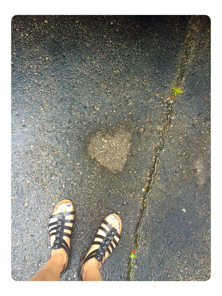 The sun is remiss and low clouds hover as we arrive at our destination. I look down and see the heart as soon as I step out of the car ~