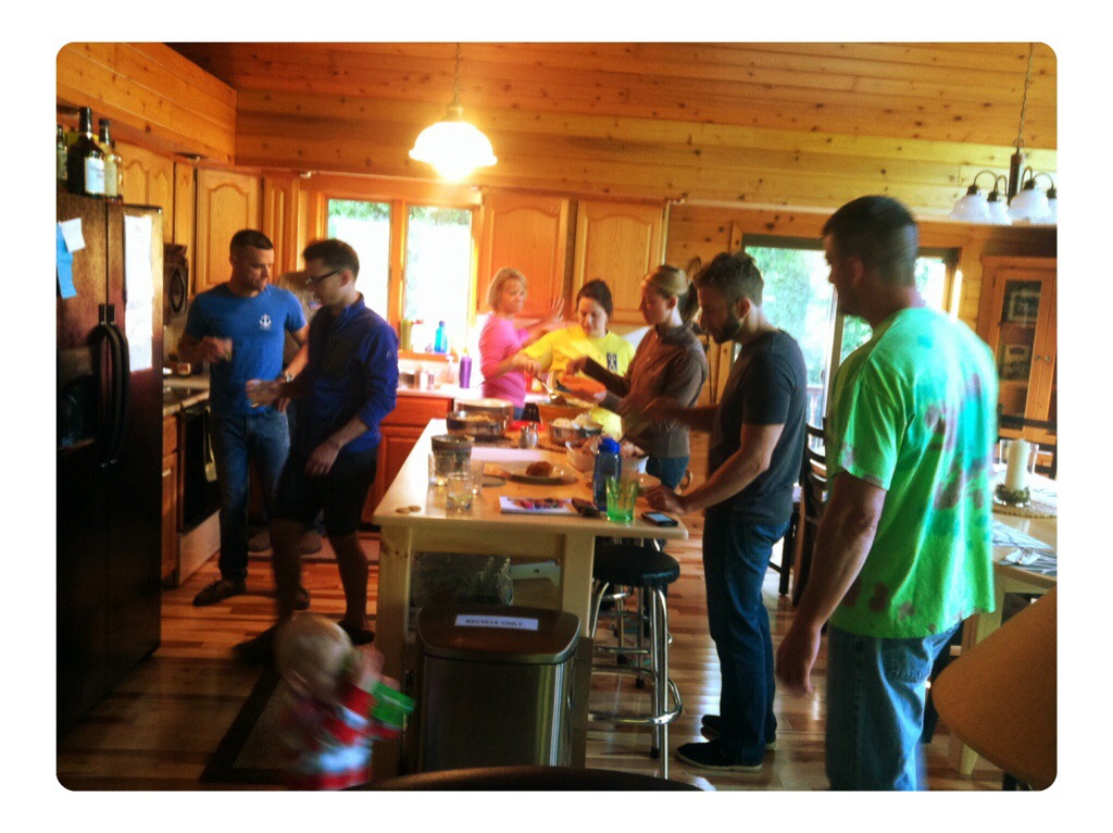 Several generations of cousins, second-cousins, once, twice, thrice removed, aunts, uncles — greats and grand, etc. convene for cocktails and hors d’oeuvres at a relative’s lake house. Despite a couple of raindrops, it is a beautiful evening!