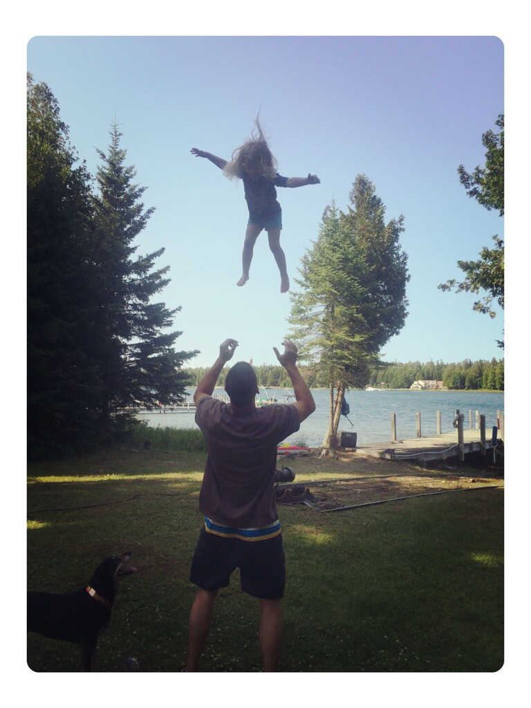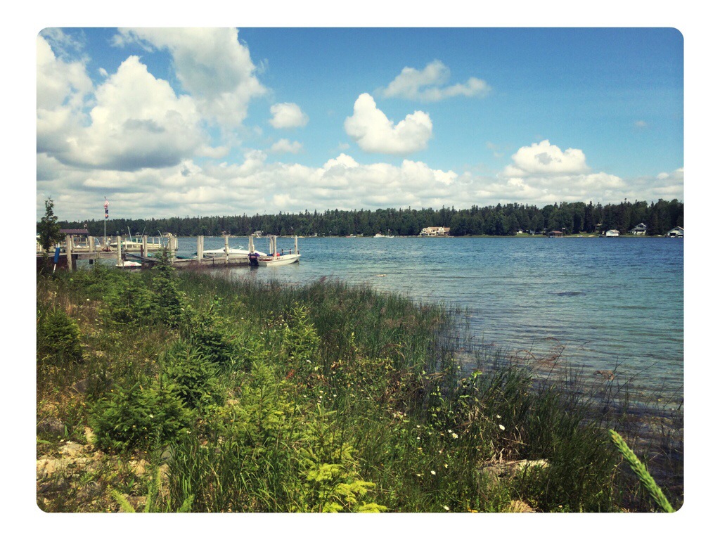 William, Gavin and I bike along the length of the island (1.1mile). It is a beautiful ride accompanied by the smell of pine and the hum of distant boat motors. The resplendent blue water is visible through the trees on both sides of the street. We stop at a spot I used to visit in days of yore when Nora was just a covert little zygote. I had been unaware then of her tiny presence, blissfully oblivious to a sweet extra chromosome and to what the next three years had in store for me — for my family.