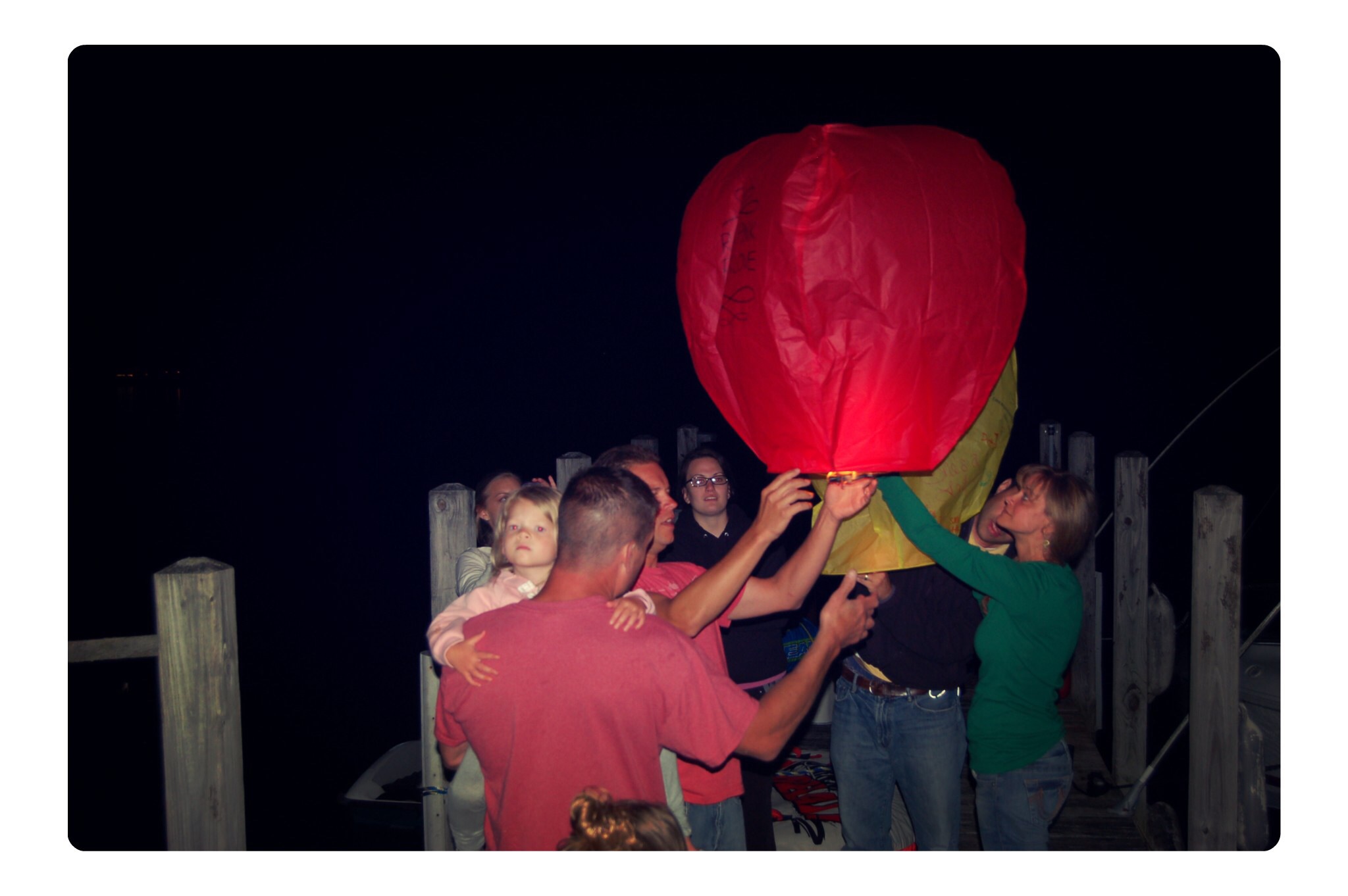 The three glowing lanterns rise high above the earth. I can’t see them clearly through the tears that have pooled up in my eyes, my Dad’s arm around me. We remember through teary smiles as they drift off out of sight.