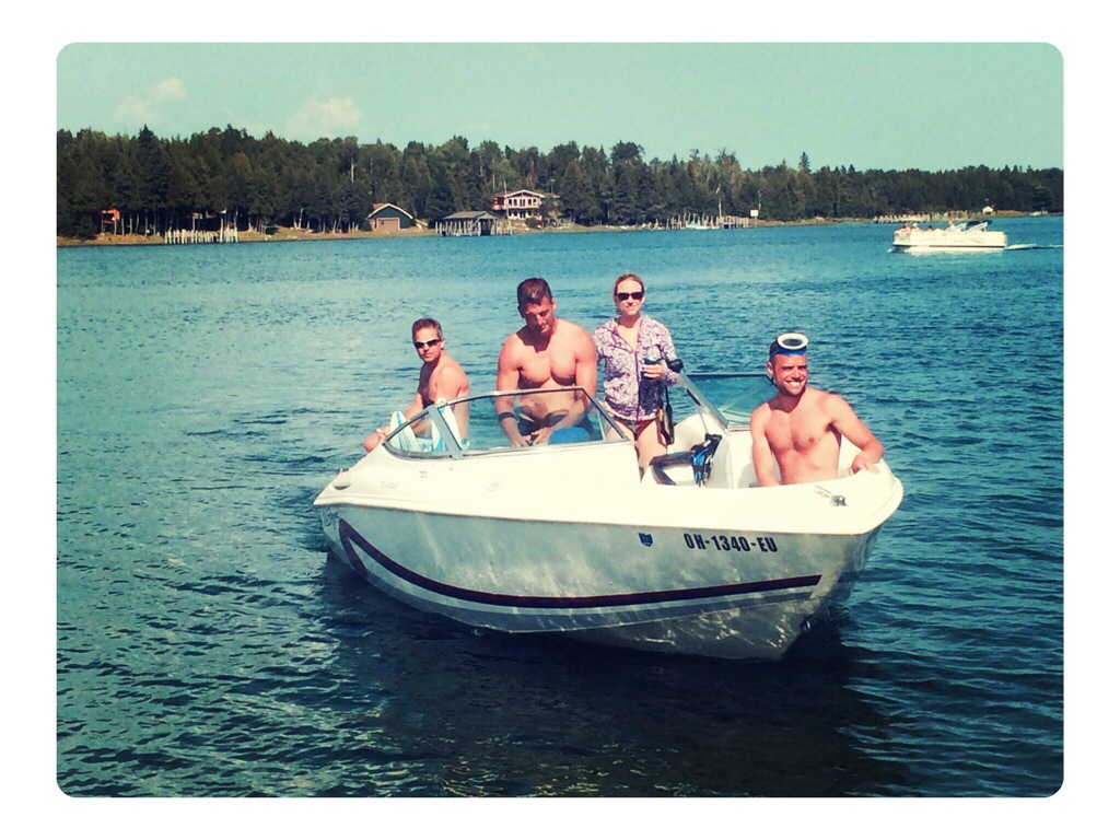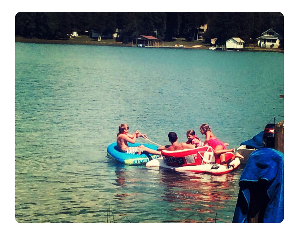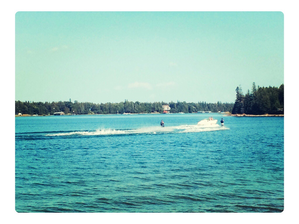Or perhaps Kohen is trying to get a glimpse of his Dad out on the water? Joe and Dan commence in a double ski session. Minus the life jackets and real background, it was something straight out of an old Elvis Presley movie.
