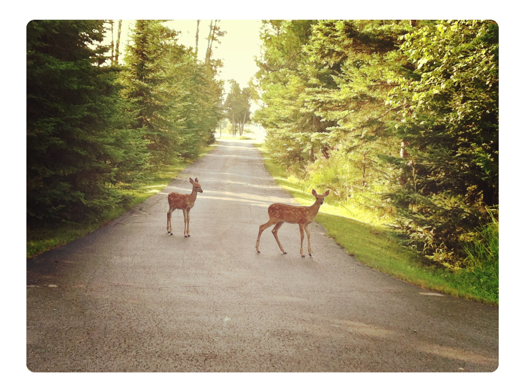The deer are everywhere. We see a set of adorable twin fawns along our evening walk.