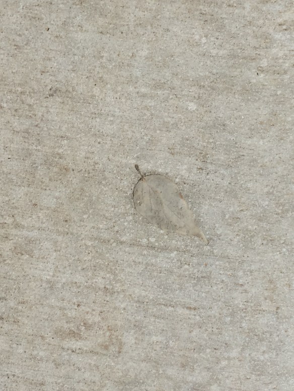 The perfect imprint of a leaf in an aged slab of concrete catches my eye.