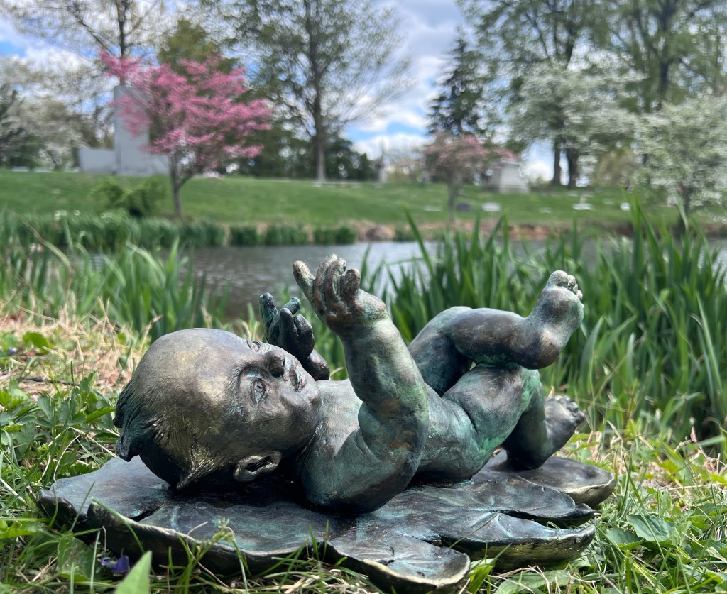 Confession … It isn’t actually cast in bronze, as that ended up being way above and beyond my moneys!! But I think I did a pretty decent job of giving it a faux bronze finish! And unless I told you otherwise, you’d never know that there was another layer of paint under the faux bronze. The first paint job didn’t turn out exactly as I had imagined. It was a little too realistic and had taken on the characteristics of “creepy baby doll.”