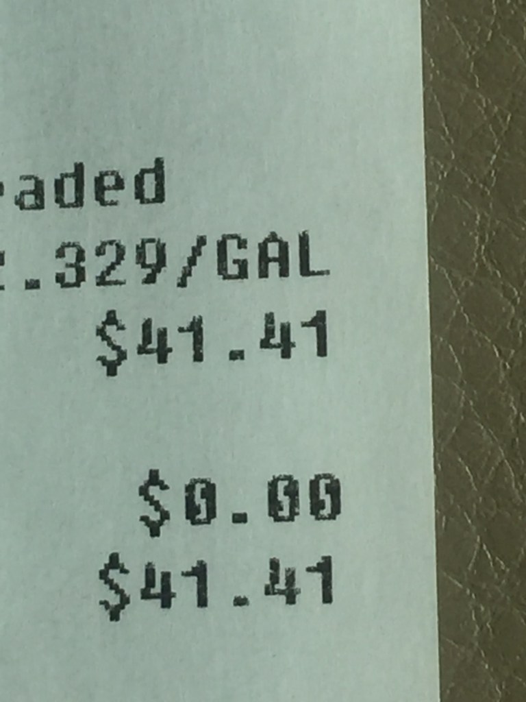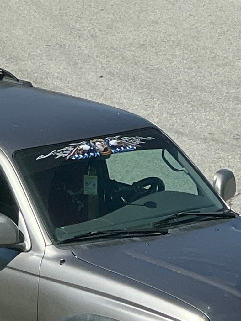 The timing of today’s very blatant “41” was impeccable. AND, If you zoom in on the picture, my friend Maggie pointed out that there are THREE BIRDS (eagles!) at the top of his windshield!