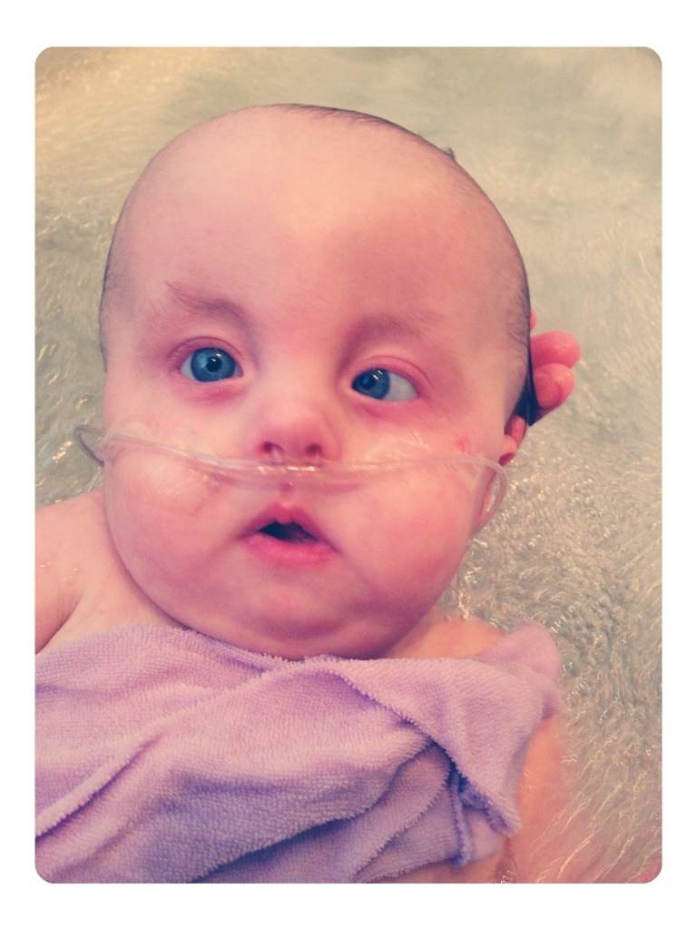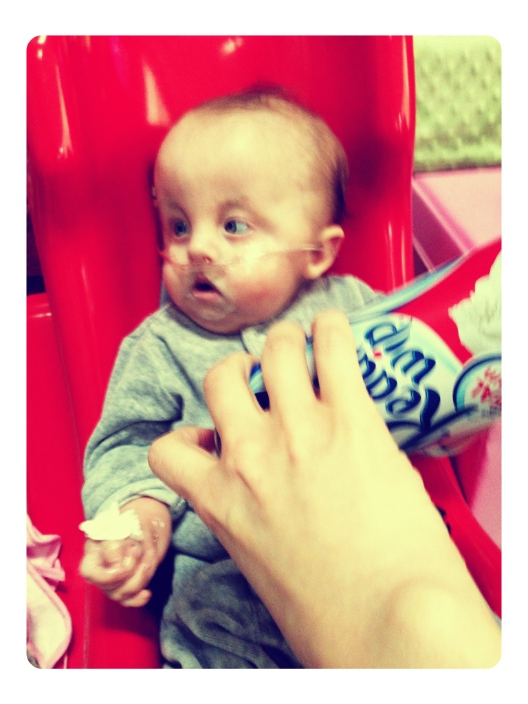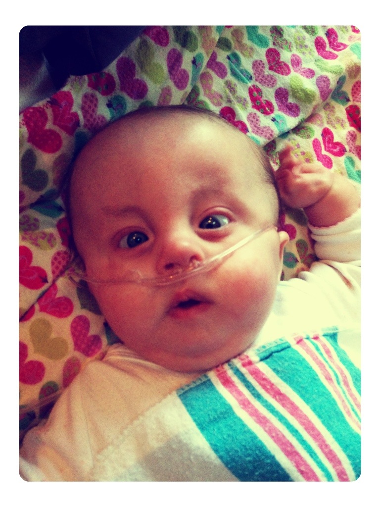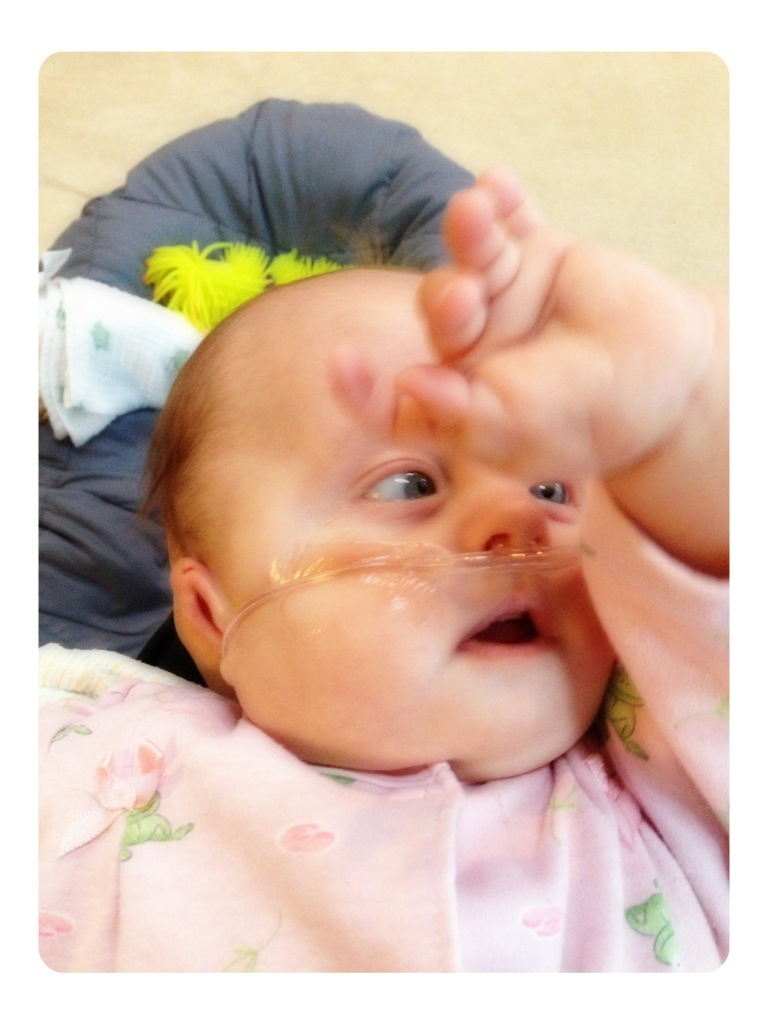 Nora had a good day today. Her heart rate is still elevated, but it wasn’t up in the 200s at all. Her oxygen saturation levels aren’t perfect but they’re decent. She ate more mL of milkies before 8:00 this morning than she would in a typical DAY just a month ago. When William spoke with our regular cardiologist this afternoon Dr. H was very pleased to hear that Nora was still eating so well. He seemed much more optimistic about the increased Lasix than yesterday’s cardiologist, but obviously still no guarantees. To hear that was definitely a breath of fresh air!!